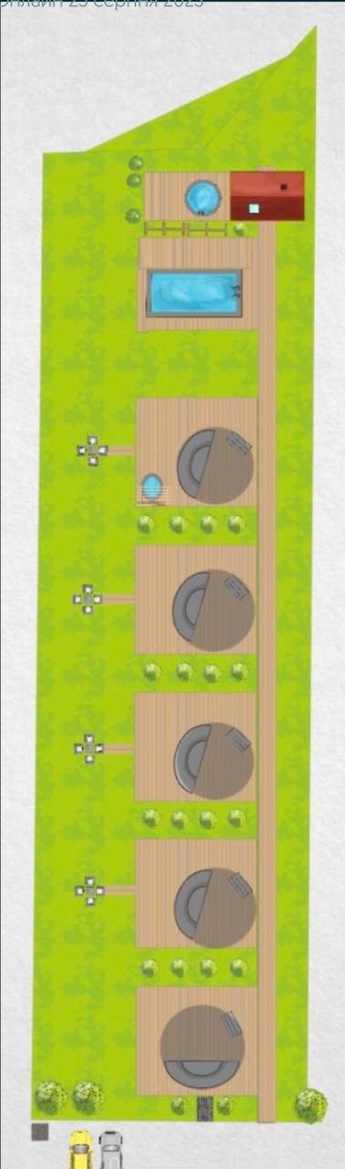Розміщенні будинки для проживання сезонних робітників (до 30 чоловік), будинок охорони оздоблений для проживання круглий рік (котел, вода, світло).